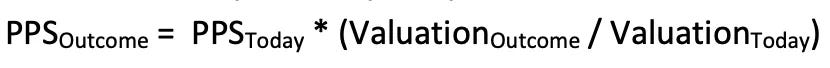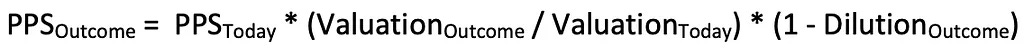 In an effort to increase the accuracy of your final projections, albeit slightly, you could also estimate how much additional dilution the company will incur from future rounds of financing. I wouldn’t worry too much about getting this 100% correct as the effects from additional dilution will likely be subsumed by the margin of error of your probability estimations anyway. But the general adage here is that the bigger the exit valuation (as a multiple of today’s valuation), the more rounds of financing (and dilution) the company is likely to incur along the way.
